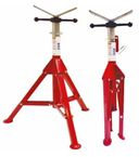 Also commonly known as folding leg pipe stands, adjustable stands are designed for pipes, tubes or cylindrical workpieces that combine strength with portability. The 'adjustable' nature refers to legs or base components that collapse, often via hinges or quick-release pins, so the stand can be transported or stored more easily without taking up much space. These stands often feature V-heads, adjustable height mechanisms, locking pins or washers, and sometimes rollers or wheel heads for alignment or rotation.