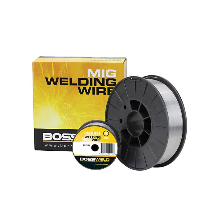 The Bossweld Gasless GS Self Shield MIG Wire is a self-shielding, all-positional flux-cored wire for single pass applications. Excellent for use on thin gauges of galvanised and mild steel. Travel speed is high and weld edges are smooth. It has a smooth arc action, full slag coverage, easy slag removal and low spatter. No shielding gas is required. The use of DC straight polarity welding current minimises the risk of burn through. Deposition efficiency is higher than that of shielded metal arc electrodes.