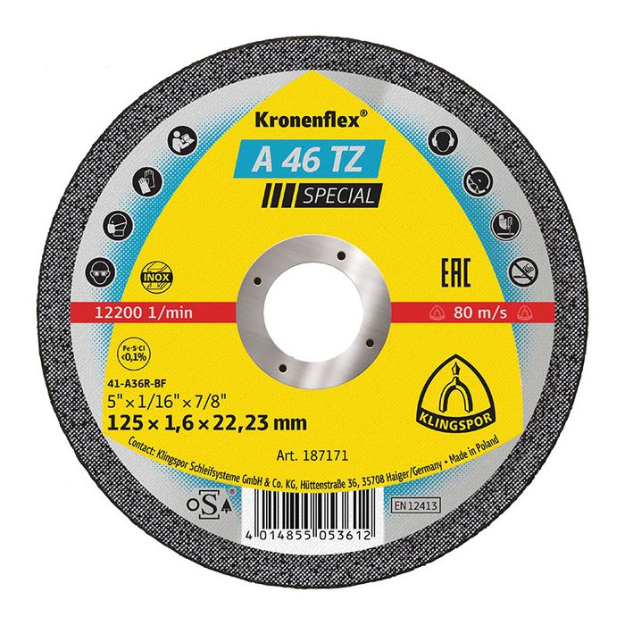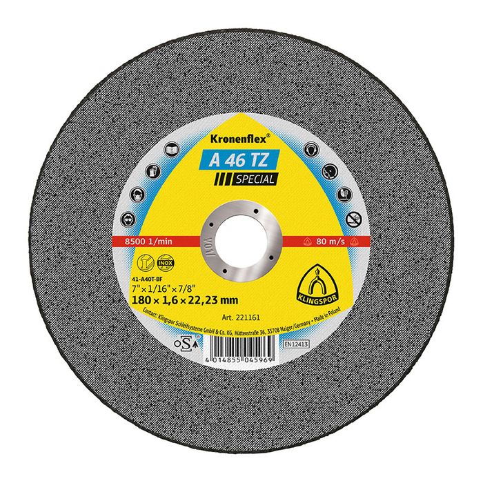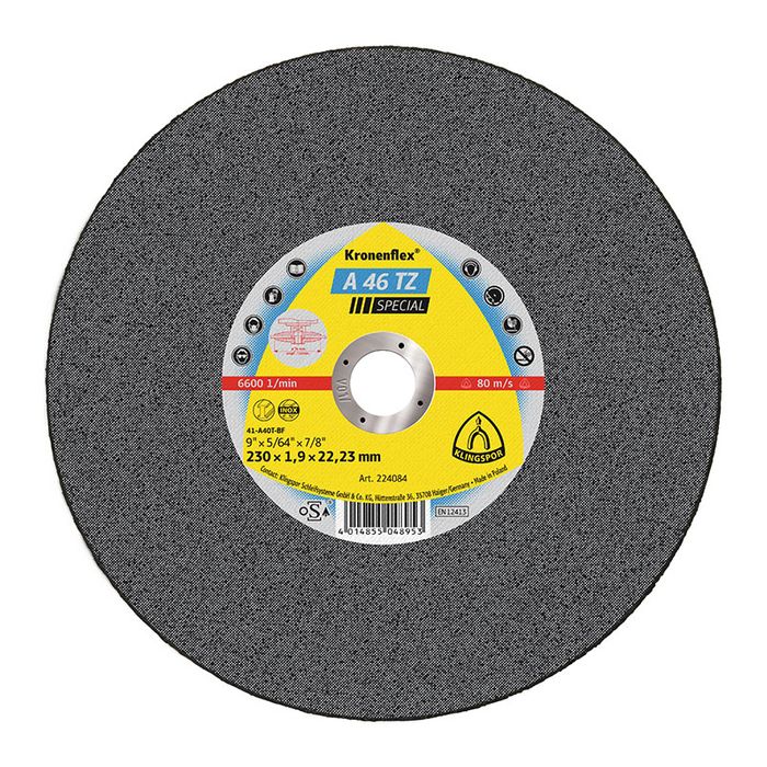 The Kronenflex A 46 TZ Special cutting-off wheel has been designed especially for demanding tasks and cuts such materials as steel and stainless steel.