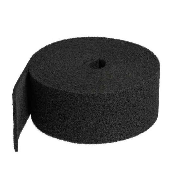 Equipped with an aluminium oxide abrasive, this non-woven web roll is a recommended for refining metal and wood surfaces.