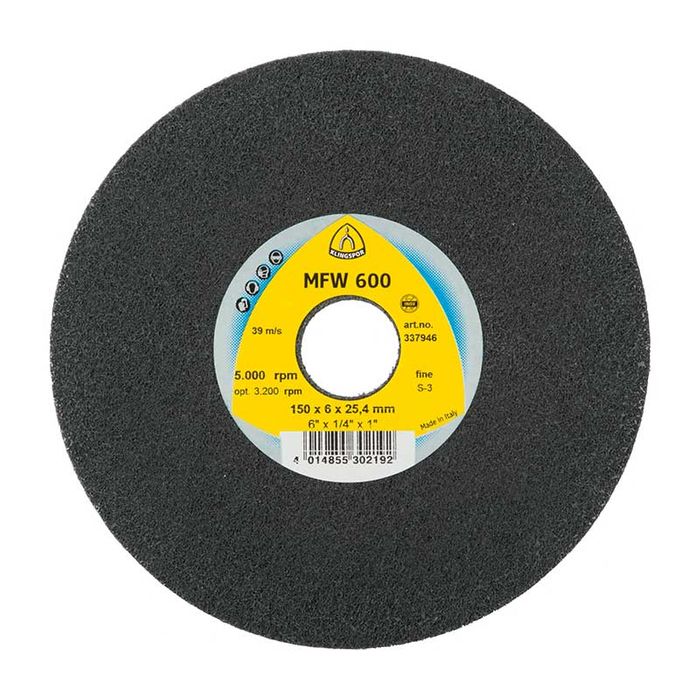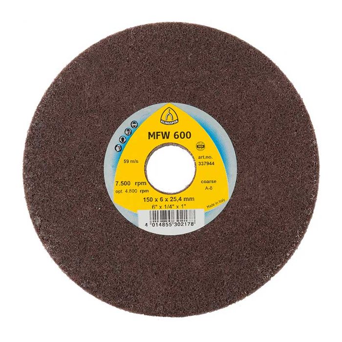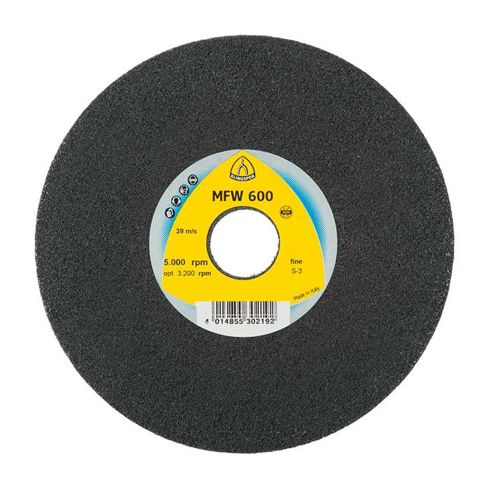 The MFW 600 high performance non-woven web wheel by Klingspor has been optimised for work on steel, stainless steel and NF metal. It is the specialist for the finishing of weld seams on stainless steel and is available in various grit sizes. This non-woven web wheel is intended for use in combination with a fillet weld grinder.