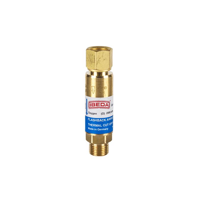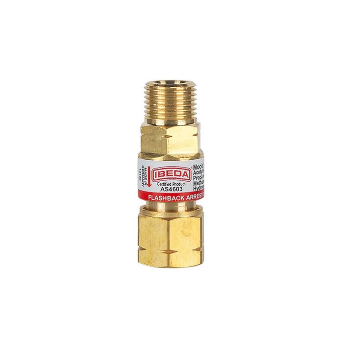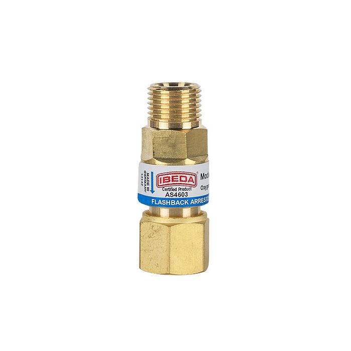 The flashback arrestor is designed to prevent the backflash of a flame through the torch into the hoses and regulators which can cause the torch and hoses to explode and can cause severe operator injuries. They are a mandatory requirement to be fitted to both torch and to the regulator on both fuel and oxygen lines.