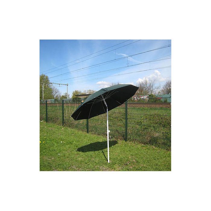 Welding umbrella specially designed for working outdoors, providing reliable temporary protection of the work site from sun or rain. Constructed of fire retardant and water repellant canvas fabric and fitted with a tilt mechanism.
