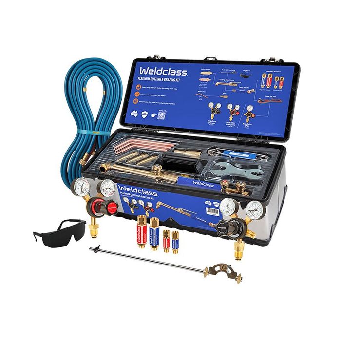 Platinum Series complete kit for Oxy/Acetylene gas cutting and brazing. Manufactured to strict quality-control standards, for performance you can depend on. Designed and manufactured by a team with over 40 years experience in gas equipment engineering. Supplied in a robust stainless-steel toolbox.