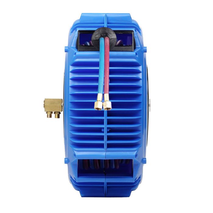 This spring rewind hose reel is designed to increase ergonomics and safety when using oxygen and acetylene for cutting or welding. It is supplied with high quality dual hose and the tough composite case protects the hose from ultraviolet radiation. The unique external swivel design provides added safety and ease of O-ring and seal replacement. It is not intended for use with any other gases or liquids.