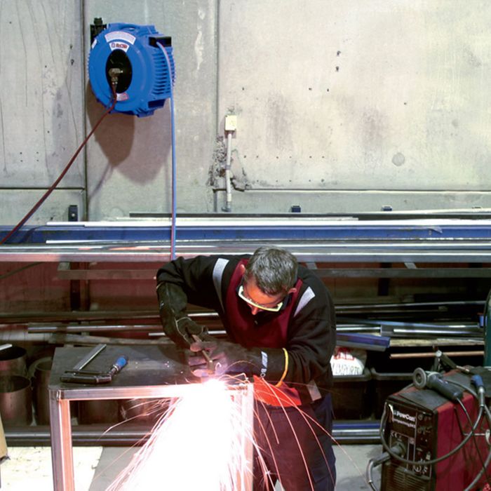 This spring rewind hose reel is designed to increase ergonomics and safety when using oxygen and acetylene for cutting or welding. It is supplied with high quality dual hose and the tough composite case protects the hose from ultraviolet radiation. The unique external swivel design provides added safety and ease of O-ring and seal replacement. It is not intended for use with any other gases or liquids.