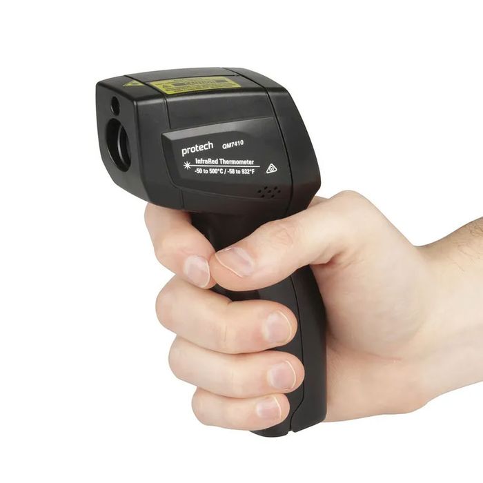 A safe way to measure temperatures in hard to reach places, and hot or hazardous areas. It is compact and easy to use - simply aim the built-in laser at the target area and read the temperature between -50°C to 500°C from the backlit LCD screen. Features include a 12:1 distance to spot ratio, rapid 500ms detection, max/min, data hold, and auto-power off functions.