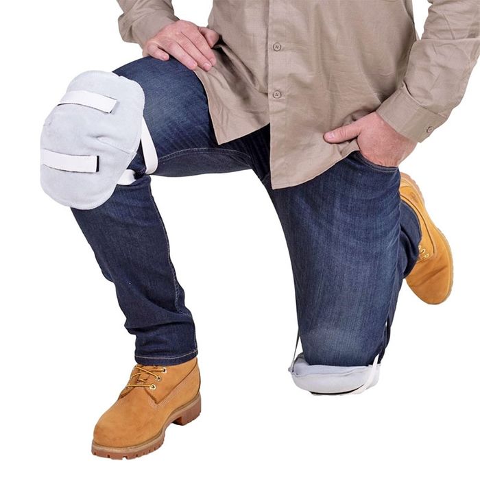 Leather welding knee pads equipped with quality 50mm foam and quick release elastic/hook and loop closure.