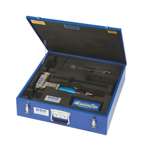 Machine supplied with locking jaws, service tools, instruction manual and warranty certificate all in a protective metal case.