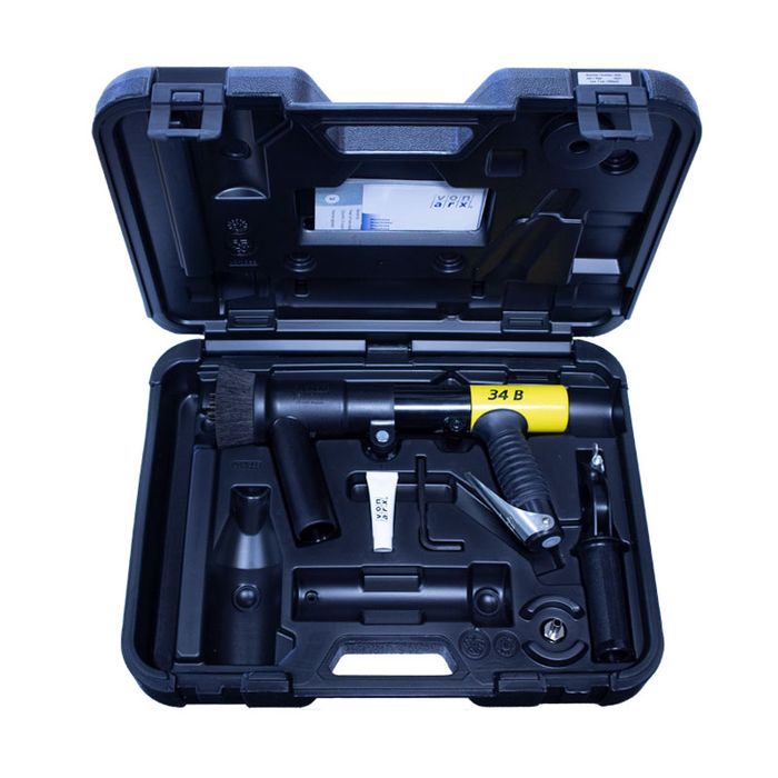 The Von Arx 34B Needle Gun is suited for machining the surfaces of metal, concrete and stone for the purposes of cleaning, derusting, roughening, descaling, clearing, smoothing and bush-hammering. Includes 28 x 3mm needles, allen key plus plastic carry case.