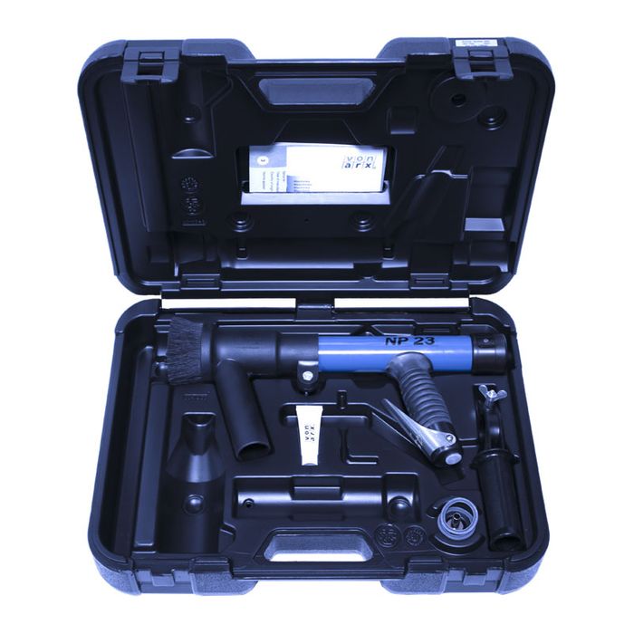 The Von Arx NP23 Needle Gun is intended for machining the surfaces of metal, concrete and stone for the purposes of cleaning, derusting, roughening, descaling, clearing, smoothing and bush-hammering.