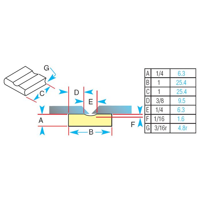 This tile is for similar applications as the 1G42-R but where a narrower root bead is required. Each tile is radiused to form a strip around a cylinder.