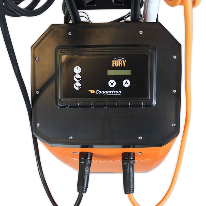 The Cougartron Fury 200 is a new and upgraded model of the former InoxFURY (WELC1027) weld cleaner and comes equipped with updated electronics, redesigned button-based user panel, firmer wheels, practical cable holders, new sturdy cables – and new and improved housing.