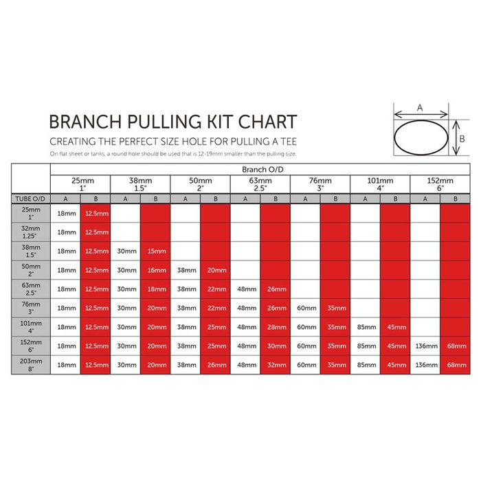 The Orbimax Standard Tee Pulling Kit also known as a Branch Forming Kit is a manual system for pulling tees and forming outlets in many different materials such as Stainless Steel and Copper.