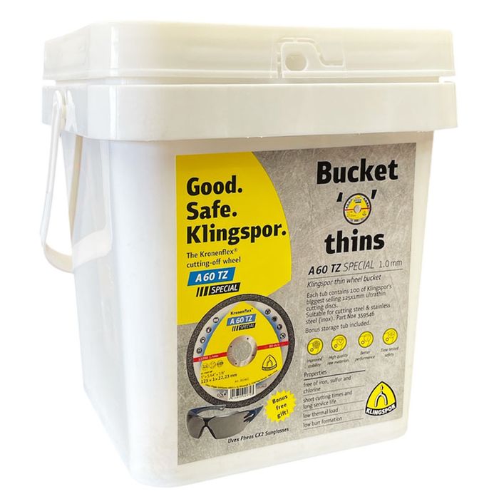 This bucket contains 100 of Klingspor’s biggest selling Kronenflex A 60 TZ Special cutting discs (125mm). Suitable for cutting steel and stainless steel (Inox).