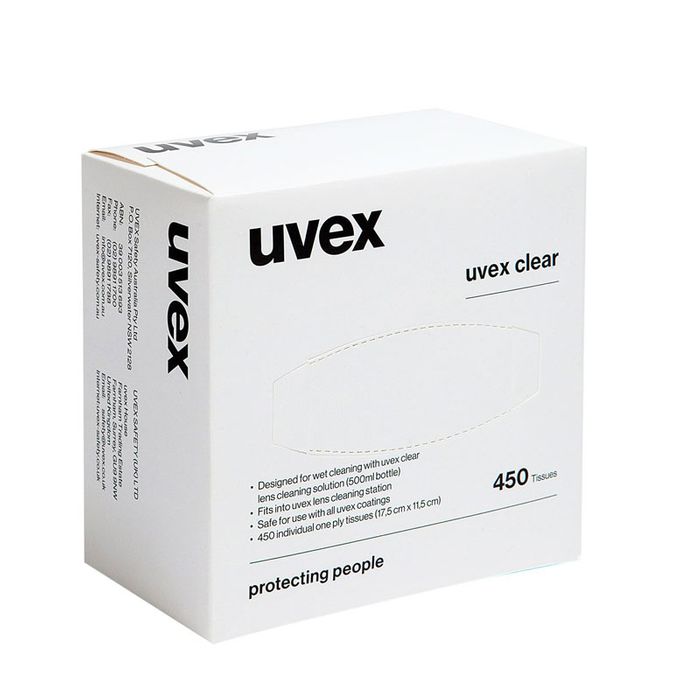Lens cleaning tissues suitable for use with all Uvex lenses and coatings.