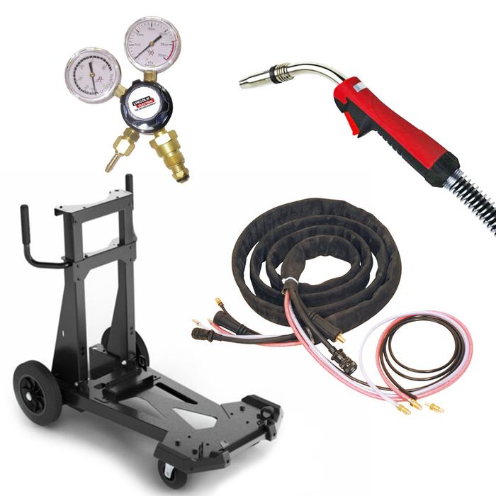 The Lincoln Speedtec 500SP VRD/LF56D Package (K14259-2P) comes ready to weld and includes a Speedtec 500SP Power Source, LF56D Wire Feeder, VRD, 4-Wheel Cart, 10m Interconnection Cables, Powercraft® 360G MIG Torch (4m) and Argon Regulator.