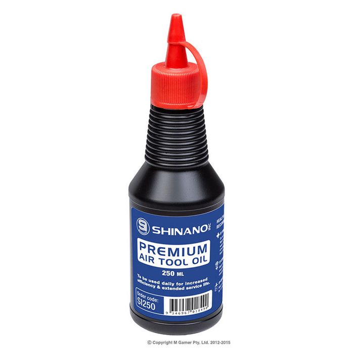 Shinano's Premium Air Tool Oil is specifically formulated to maintain the performance of any air tool. Adding only a couple of drops daily to the air inlet will greatly reduce internal wear and maintain the integrity of rotor vanes as well as gaskets, seals.