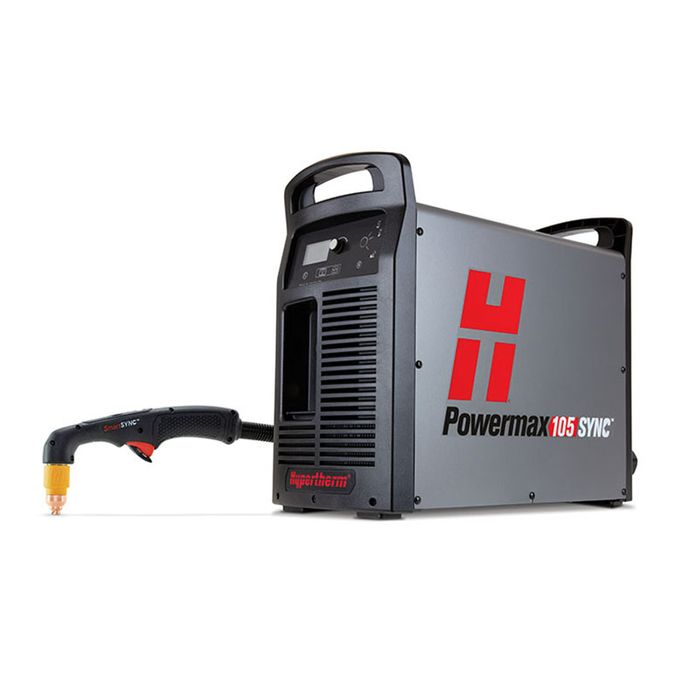 The Hypertherm Powermax105 SYNC™ is a next-generation professional grade air plasma cutter that dramatically simplifies system operation for cutting and gouging up to 32mm (1-1/4″) and maximises productivity through reductions in downtime, optimised cut quality performance and streamlined consumable inventory management.