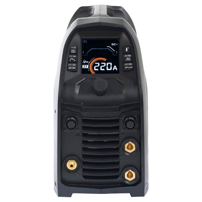 This multi-voltage TIG welder is perfect for industrial workshops and site welding applications. It uses PFC technology for energy-efficient operation. Standard features include pre- and post-flow gas control, slope time regulation, memory channels, and power adjustments that can be made using optional remote controls.