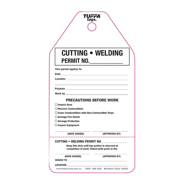 - Cutting Welding Permit Tags 150 x 80mm PK100