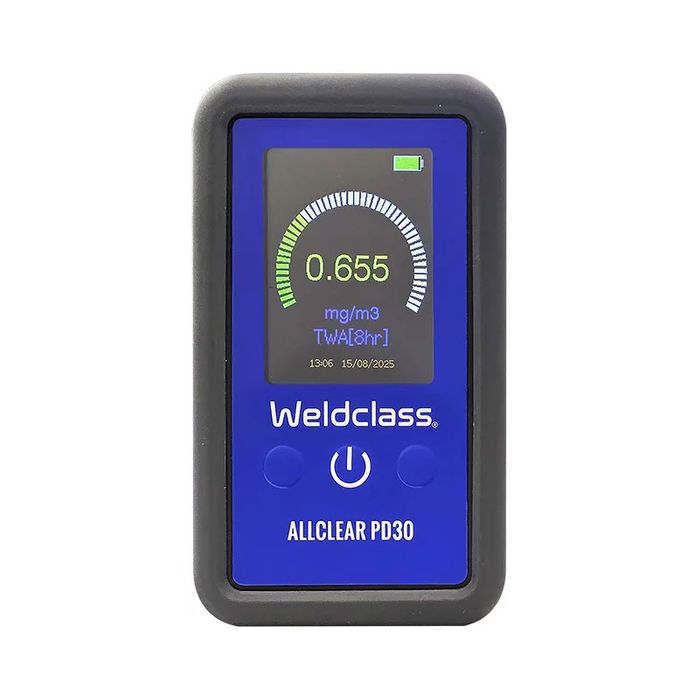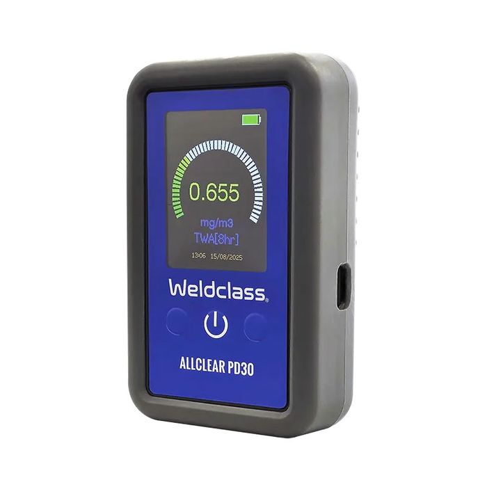 Stay on top of workplace air quality with the Australian-made AllClear PD30 Personal Welding Fume Monitor. Lightweight and wearable, the PD30 measures welding fumes directly where your people work. Provides real-time, on-device TWA (Time-Weighted Average) fume readings, to support compliance with Australian legislation. With 12+ hours of runtime at a 1-second sampling rate and simple, colour-coded display, the PD30 is a dependable and easy-to-use solution for keeping welders safe on the job.