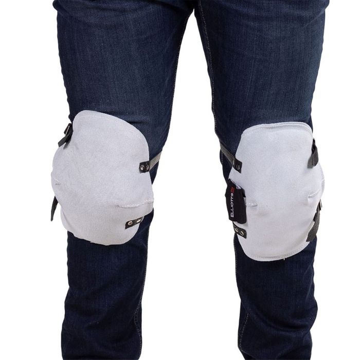 Quality leather welding knee pads equipped with 50 mm foam and strap and buckle closure.